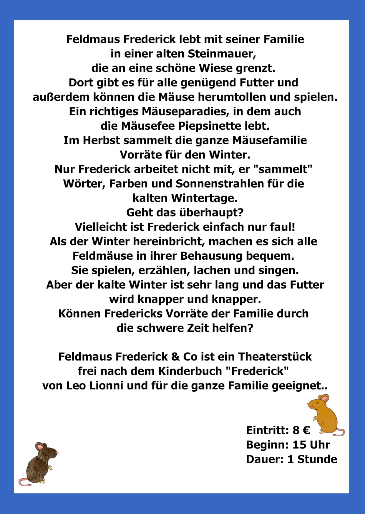 am 7. Dezember 2025 feiert das Theater THESTH Premiere von dem Theaterstück "Feldmaus Frederick und Co".